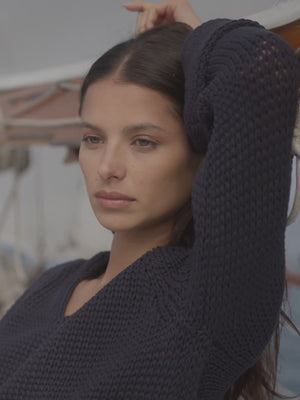 컬렉션에서 가장 특별한 니트 중 하나인 Aria Popover는 자연스럽고 여성스러운 감각의 정수를 보여줍니다. 전체적으로 더해진 오픈 스티치와 정교한 스티치 디테일이 입체적인 질감을 만들어내며, 바디를 따라 부드럽게 흐르는 실루엣이 은은한 페미닌 무드를 완성합니다. 깊은 턴백 커프로 마무리된 벨 슬리브가 구조적인 볼륨감을 더해주어 편안하면서도 존재감 있는 스타일을 연출합니다. 부드러운 코튼 블렌드 얀으로 제작되어, 하루 종일 입고 싶어지는 편안함과 감각적인 스타일을 동시에 선사합니다.