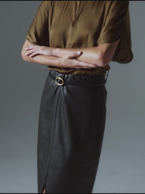 지금 바로 입기 좋은 완벽한 아이템, Esme 비건 레더 스커트는 간결함 속의 세련미를 담은 디자인입니다. 미디 길이의 펜슬 실루엣으로 여성스러움을 강조하면서도, 신축성 있는 허리밴드와 사이드 지퍼가 더해져 편안한 착용감을 제공합니다. 앞중심 솔기와 자연스럽게 이어지는 오픈 슬릿이 은은한 포인트를 더하며, 부드러운 이탈리아산 원단이 움직임에 따라 우아하게 흐르는 실루엣을 완성합니다.