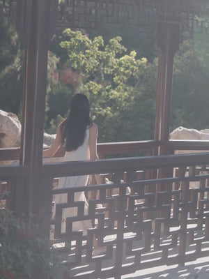 - A라인 실루엣으로 구조적이면서도 우아한 드레이프 연출
