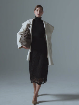 Our Mara Lace Skirt is the epitome of timeless elegance. In a beautiful, floral lace with applied embroidery for added dimension and a sleek midi skirt length it is femininity realized. A scalloped hem adds sensuality, while tailored darts on the back add shape so the skirt sits close to your body.