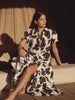 The Havana, the dress we are known for, is now available in a modern tropical print. In a sophisticated, signature silhouette, perfect midi dress is assured to take you from season to season. A tiered skirt and puff sleeves give a definitive feminine appeal, while the collared V neck and button front placket make it as chic as it is versatile. Designed to be worn belted or loose and flowing, it is the one piece that can take you everywhere.