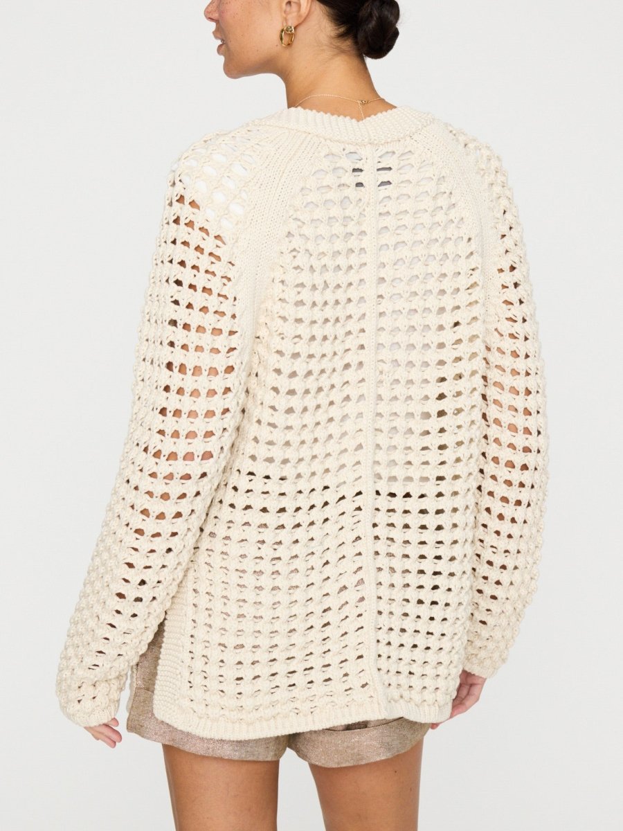 A new Brochu Walker silhouette, our Keifer Cardigan features an open engineered, crochet-inspired stitch. A chic, layering piece, this organic, mercerized cotton has a timeless quality for the new season. We love it belted or worn open; it also serves as a chic beach cover up.
