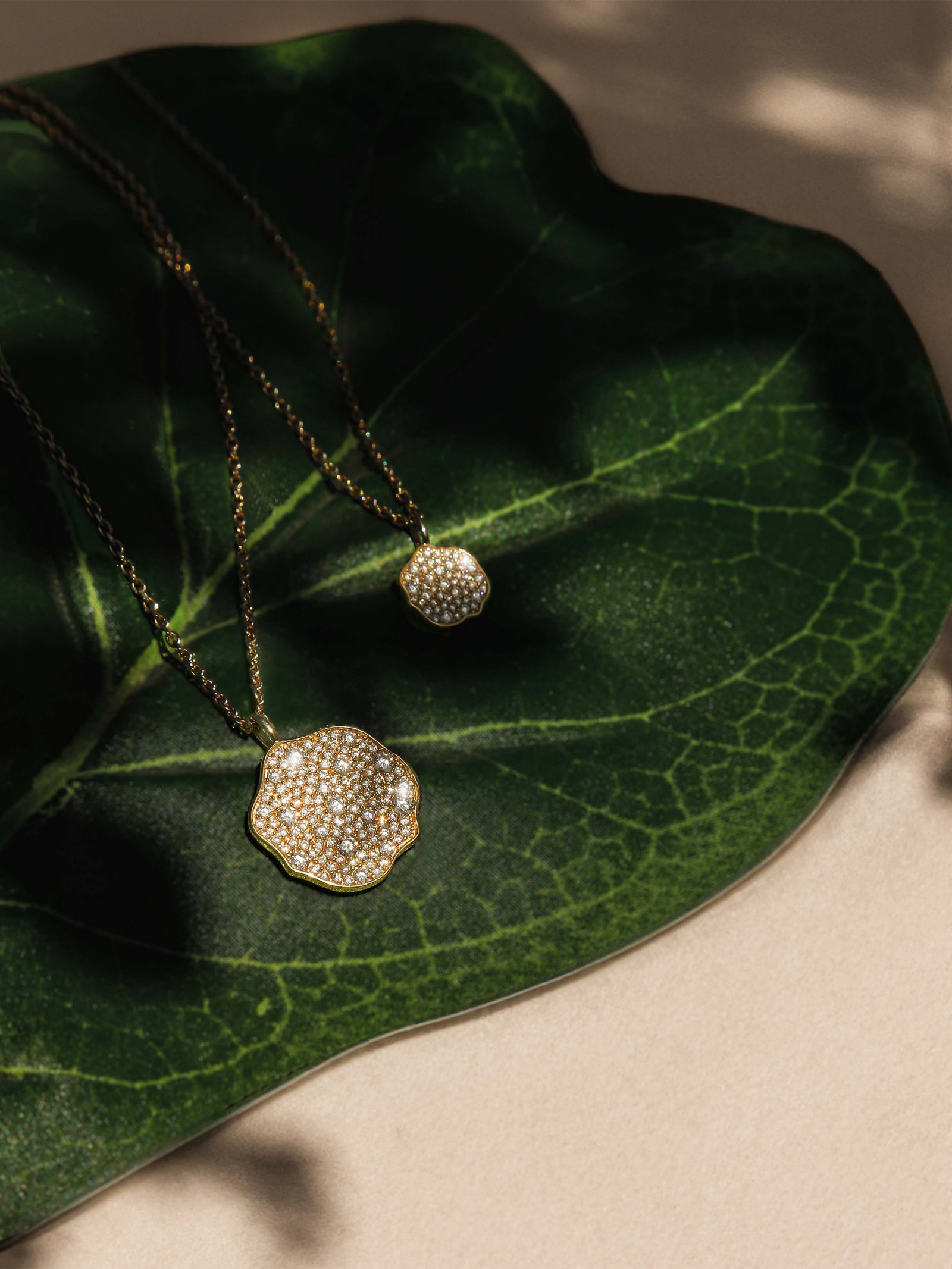 We celebrate all things sensual, and nothing is more evocative than the soft drape of a pendant necklace as it grazes your neckline. Our 18K Yellow Gold Petite Fleur Pavé Diamond Mini Pendant Necklace has a custom cable chain that culminates in the most feminine, asymmetrical, handset Pavé Diamond design. So delicate you will want to wear it every day, so radiant you will want to wear it every night.